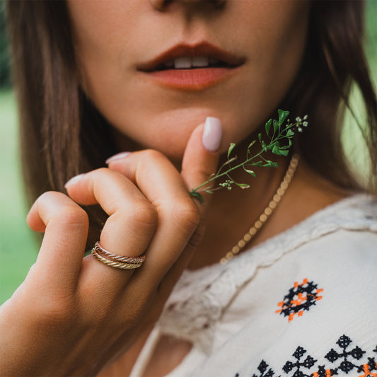 Miedziany pierścionek tensorowy w kolorze różowego złota - Amulet ochronny