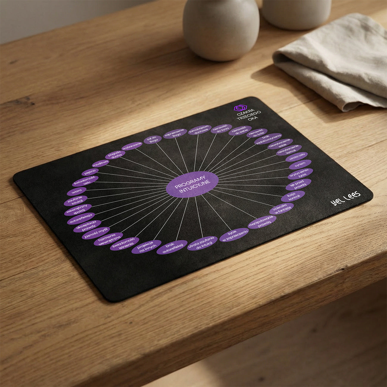 Diagram do pracy z intuicją, percepcją i subtelnym odczytem wewnętrznego prowadzenia. Jego energia i symbolika sprzyjają praktyce skupionej na rozróżnianiu, klarowności oraz głębszym kontakcie z własnym wglądem.