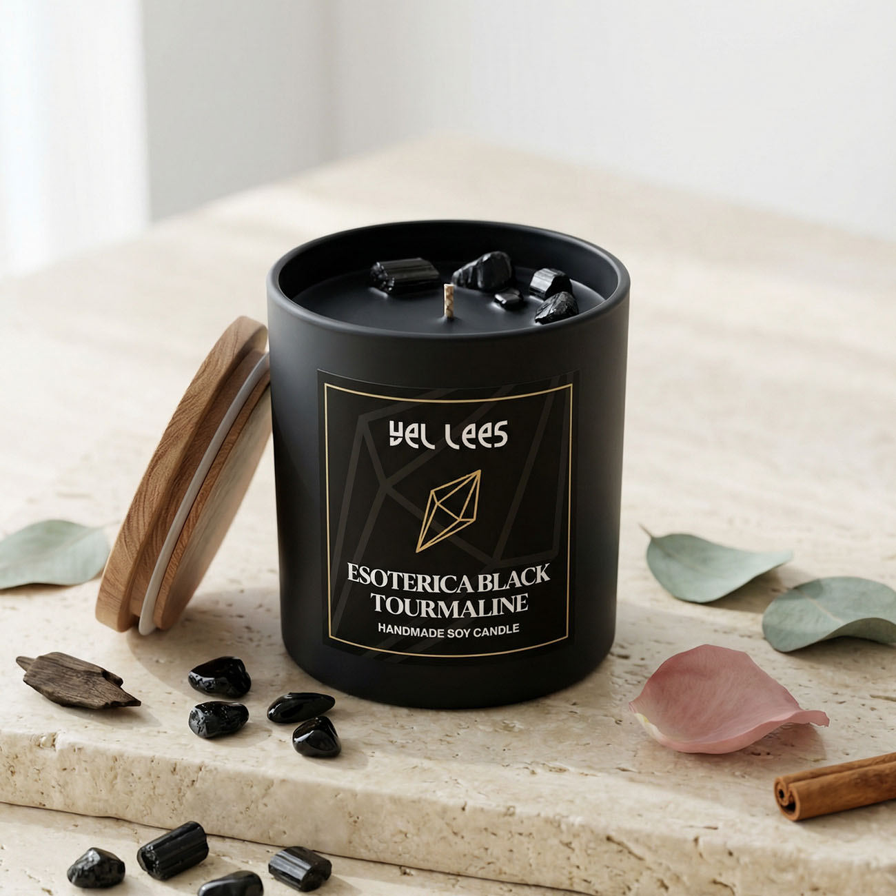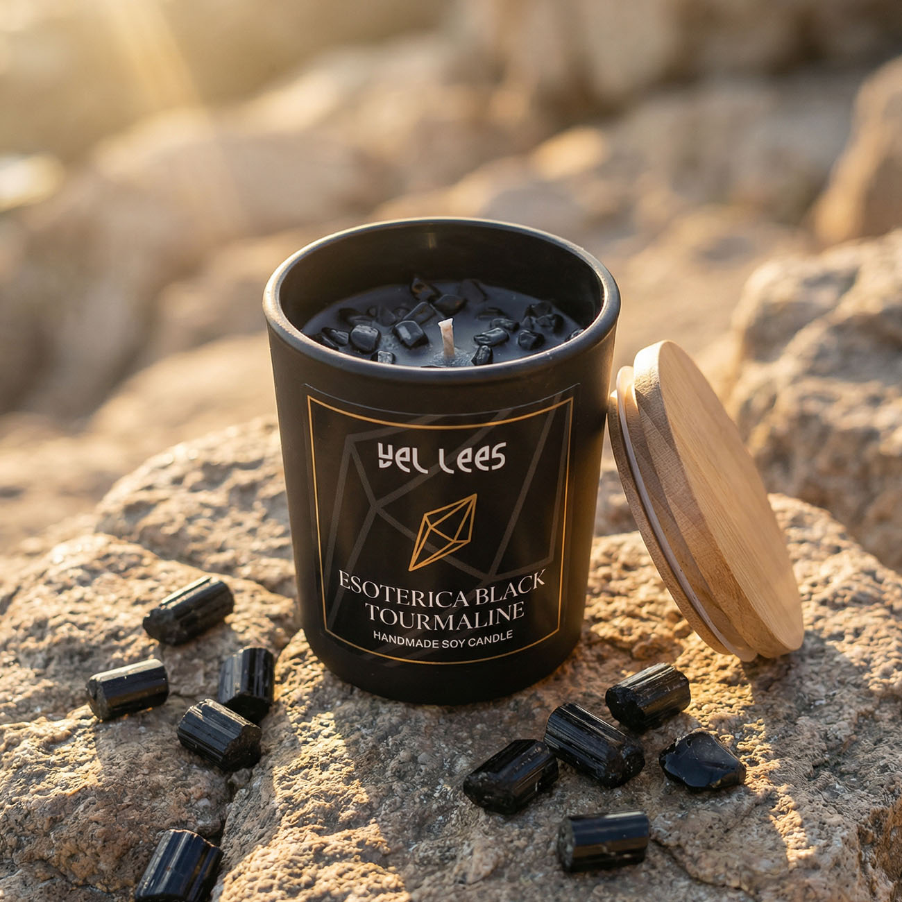 Esoterica Black to nie tylko zapach, ale rytuał. W wosku zatopione są kawałki czarnego turmalinu – kamienia ochrony i uziemienia, od wieków kojarzonego z oczyszczaniem energii i wzmacnianiem wewnętrznej równowagi.